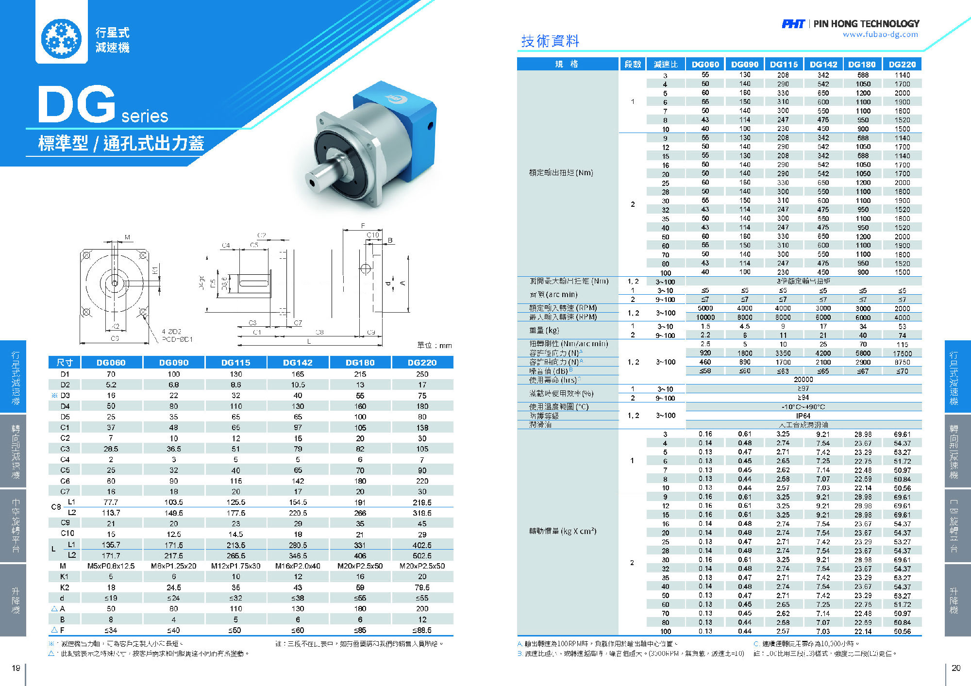 DG系列是標(biāo)準(zhǔn)型高精度減速機。 適合精度定位之需求,齒輪采用合金鋼材,外部搭配通孔式出力蓋。 品宏減速機的軸承是用NSK品牌的,齒輪經(jīng)過碳化,故精度和剛性都比較優(yōu)越!減速機出力軸是可根據(jù)客戶的要求去定制大小和長短的。